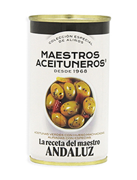 Crushed green olives with Stone, seasoned with spices., from the best harvests, Maestros Aceituneros produce quality table olives following the traditional guidelines and recipes of our master olive growers. Product of Spain.