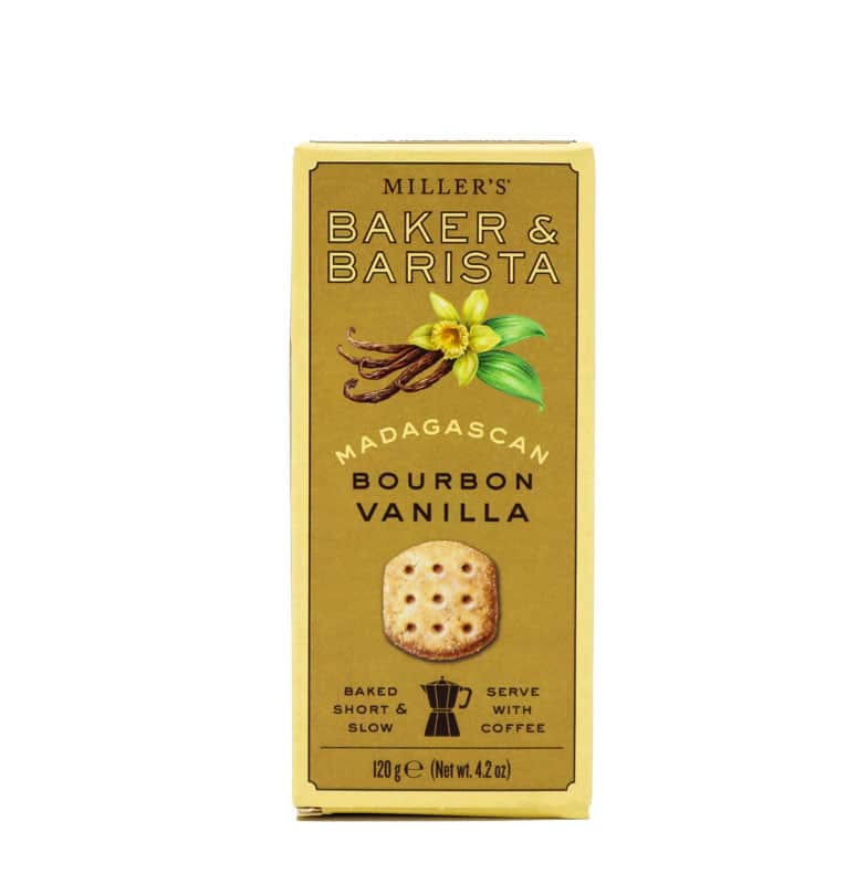 Robust, all-butter biscuits with ‘single origin’ provenance. Made with Madagascan bourbon vanilla, the best in the world. The classic marriage of butter and vanilla produces a deep and warm flavour combination. Serve with coffee.
