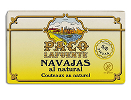 Sourced from the north of Galicia in an area known as Rías Altas. Only the highest quality Razor Clams are selected and prepared in a traditional way. Packed by hand and preserved naturally in only salt and water. Product of Spain.