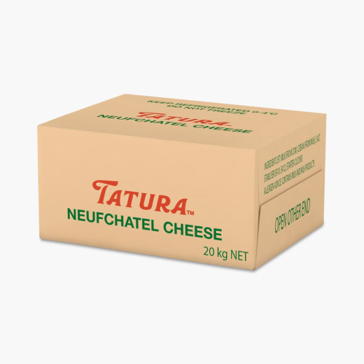 Tatura Neufchatel Cream Cheese is white and soft french style with a fresh flavour. This cream cheese is made from pasteurised and homogenised milk, ready to be used as a spread, in dips, frosting and more. It has a lower fat level than regular cream cheese, with a higher moisture content for a softer product. Tatura have packed this cheese in large 20kg carton so that you have the convenience of bulk buying which is perfect for food service.